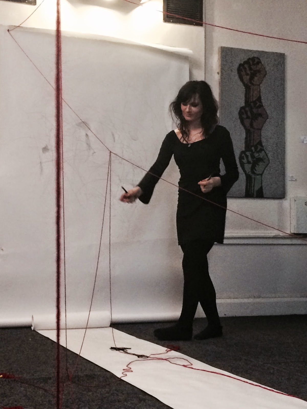The performance for the special event of the group show of ' Death and Transition' was the first experimental performative drawing- Ariadne saw 2 -homage to Blake accompanied by the Symphony 3 of Sorrowful Sounds by Henryk M. Gorecki.